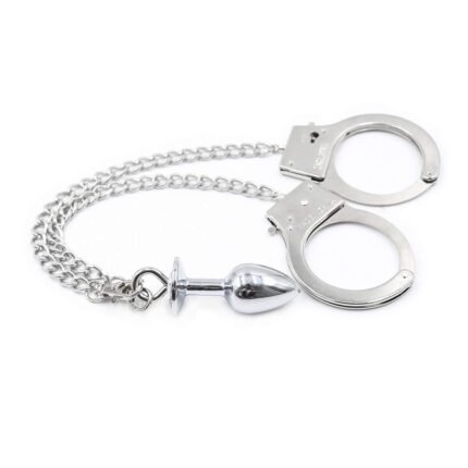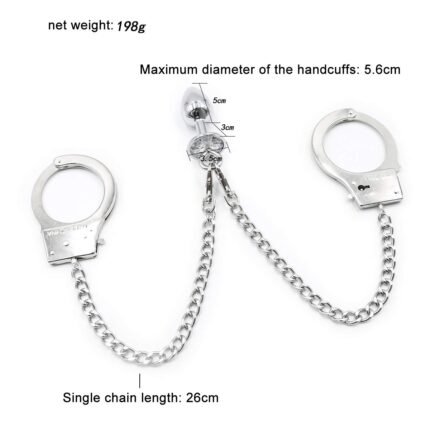 SM Sexy Handcuffs with Anal Plug for Adult, Long Chains Sstainless Steel Wrist Restraints Cuff Fetish Adult Ssex Toys for Couples and Lover