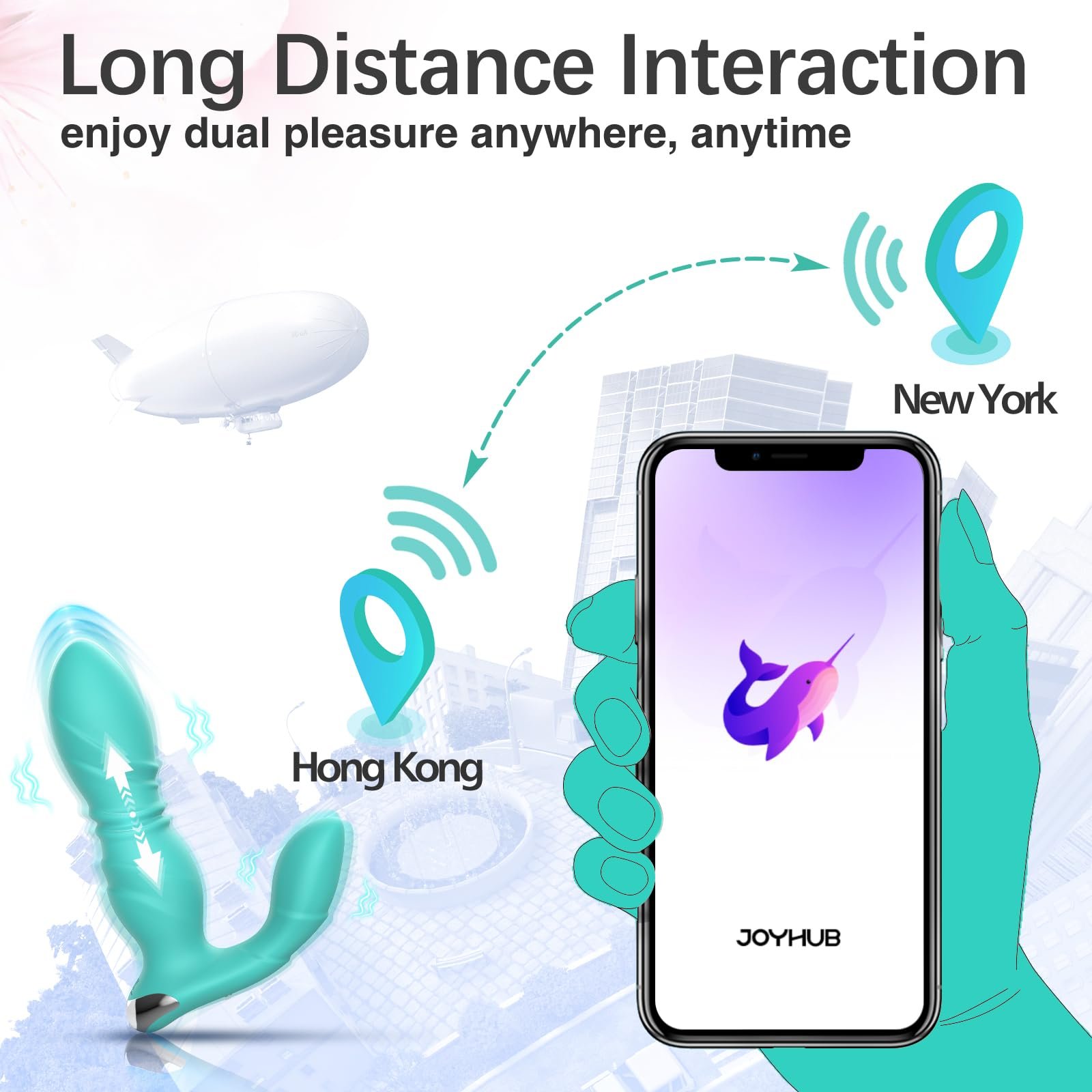 · Two Types of Control: Our long distance vibrators come with a remote controller that works up to 38 Ft away, and the app controlled vibrator design make our thrusting sex toy dildos more interesting, no distance limit, great for long distance relationship