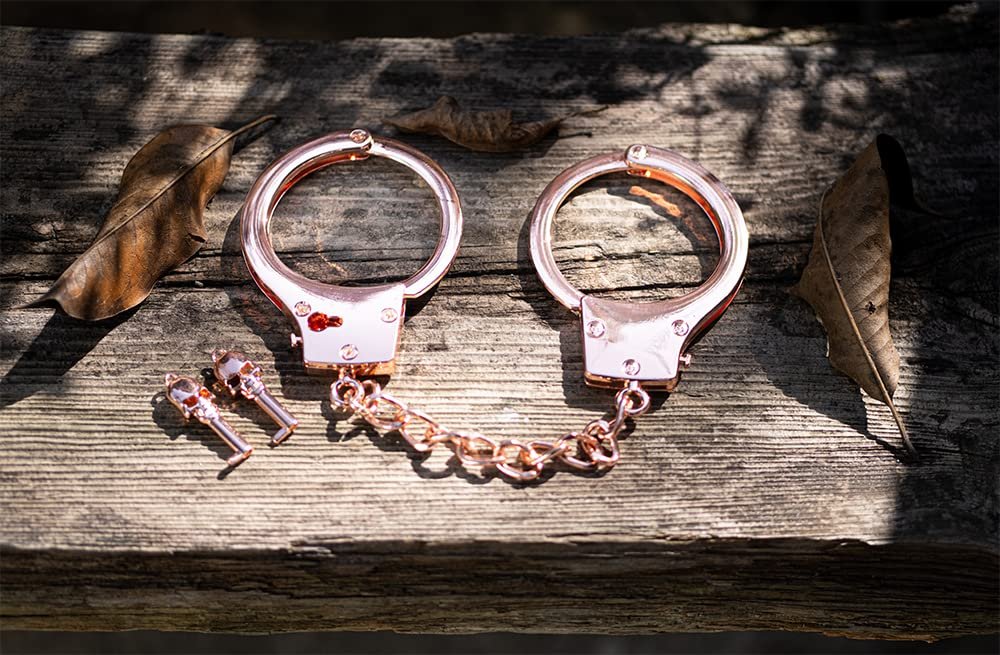 HISET Metal Handcuffs with Two Skull Keys – Prop Toy Handcuffs (Rose Gold)