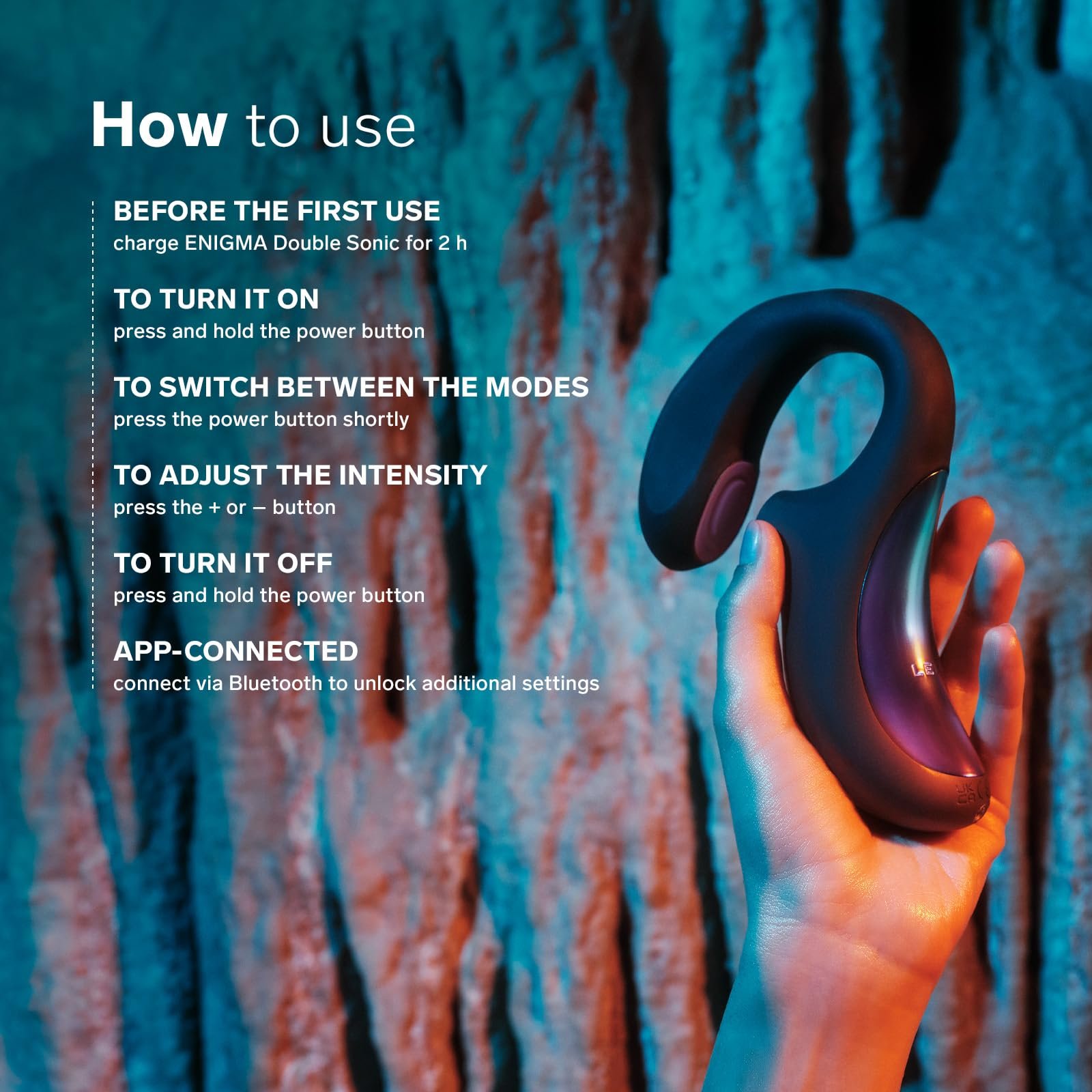 · APP CONNECTED – connecting your ENIGMA Double Sonic via Bluetooth to a smartphone makes it easy to gain more control and unlock 2 exclusive modes