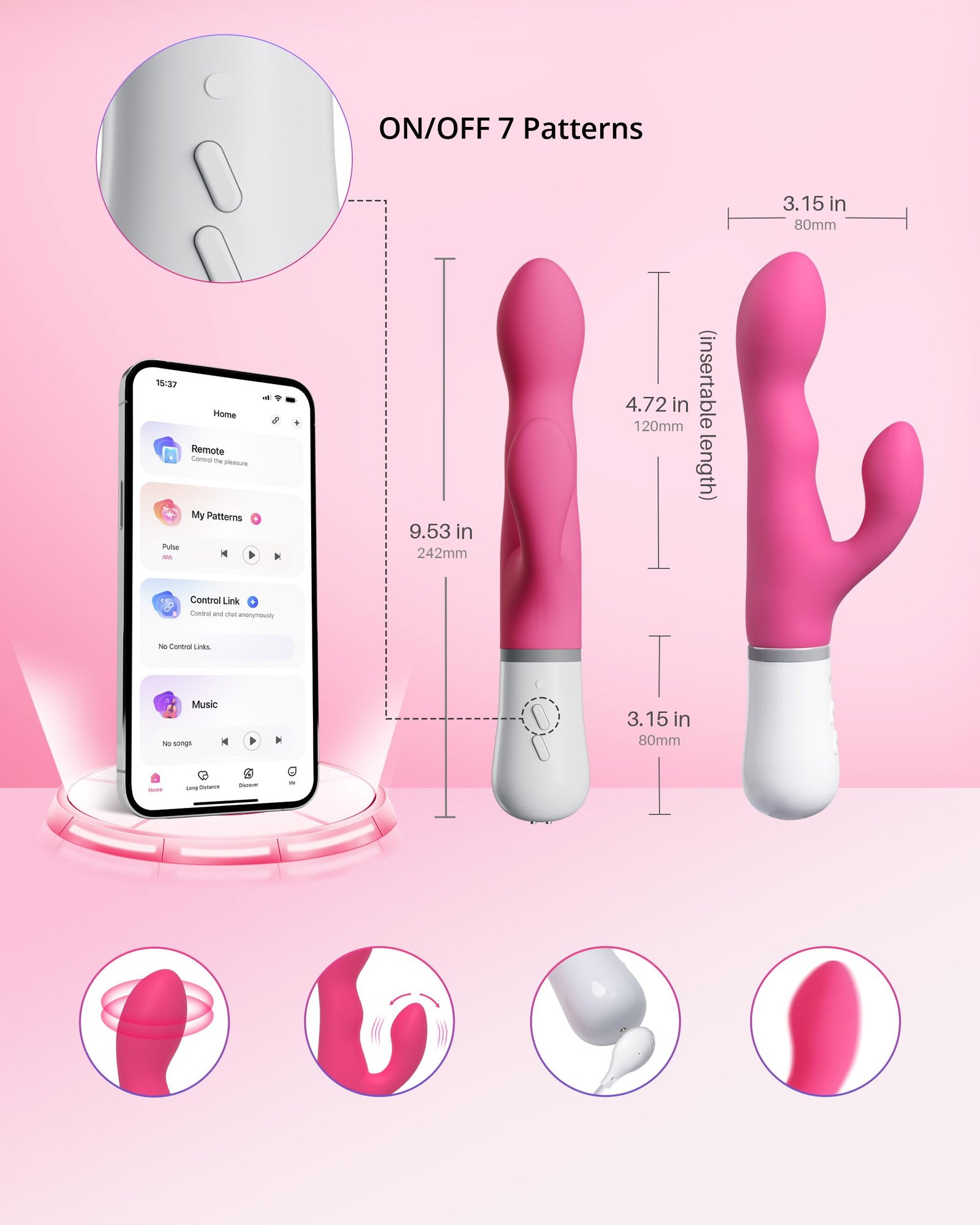 · Rabbit Vibrator: LOVENSE Nora is a pink rabbit vibrator with a wave-shaped shaft and rotating head which perfectly rub against the sweet spot. The vibrating arm is flexible, slightly curved, and accurately hits right on your clitoris. It’s also wide enough that its vibrations spread all around that area. Both arms are optimized in shape and motors to achieve the best tactility without overstimulating.