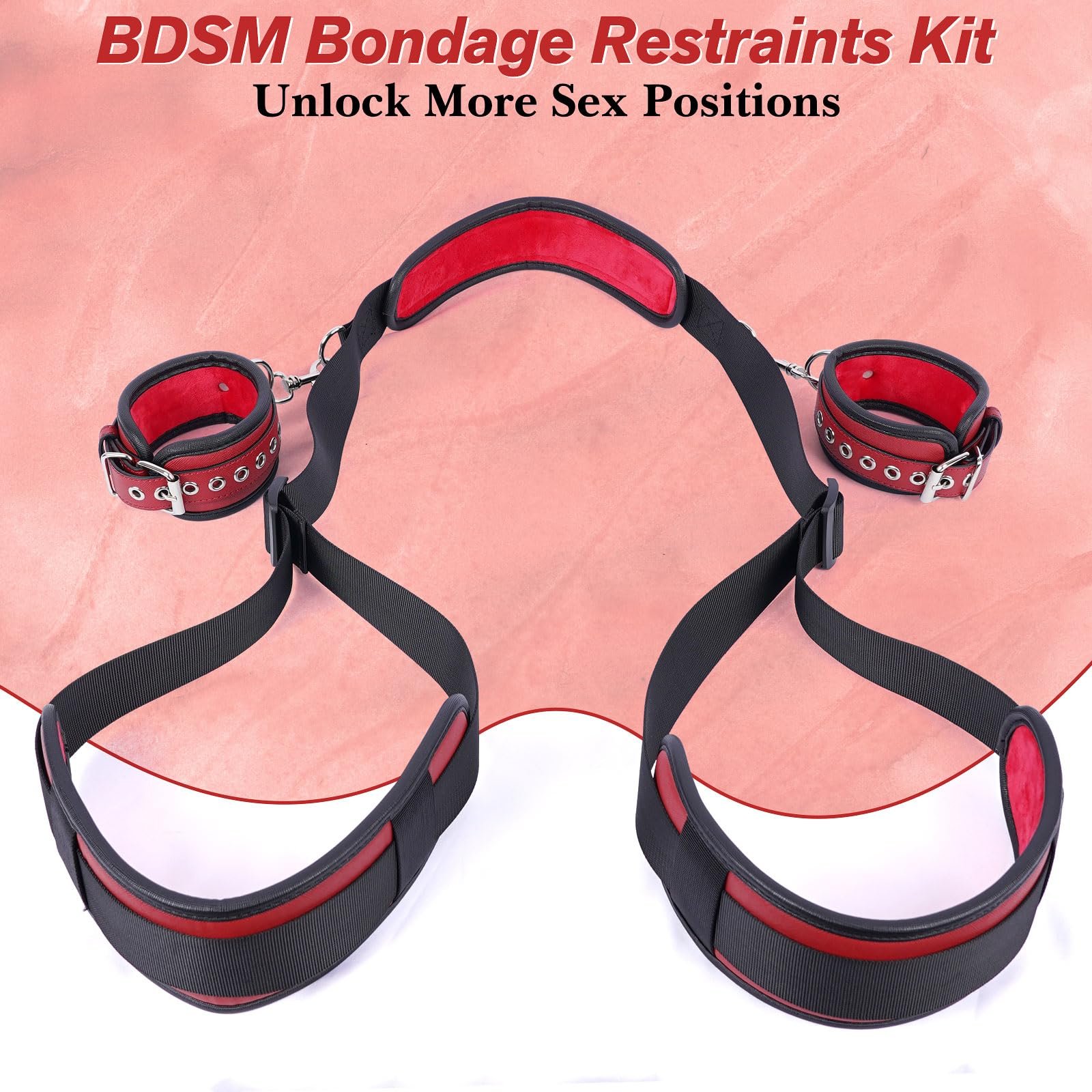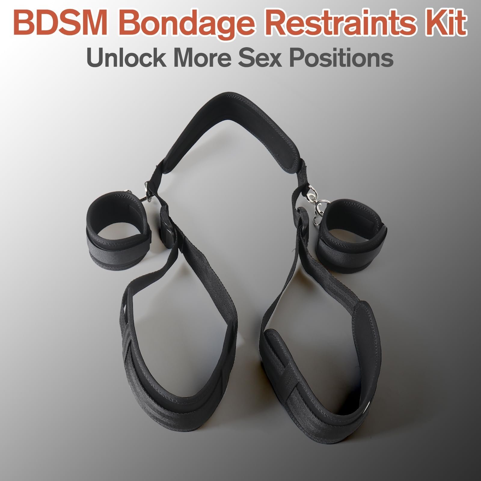 Sex Bondage BDSM Kit, Bed Restraints Set with Handcuffs Neck to Thigh/Ankle, Adjustable Leg Straps&Handcuffs for SM Adult Couples Game Play, Sex Toy for Women Beginner Leg Straps Tie Set Rope