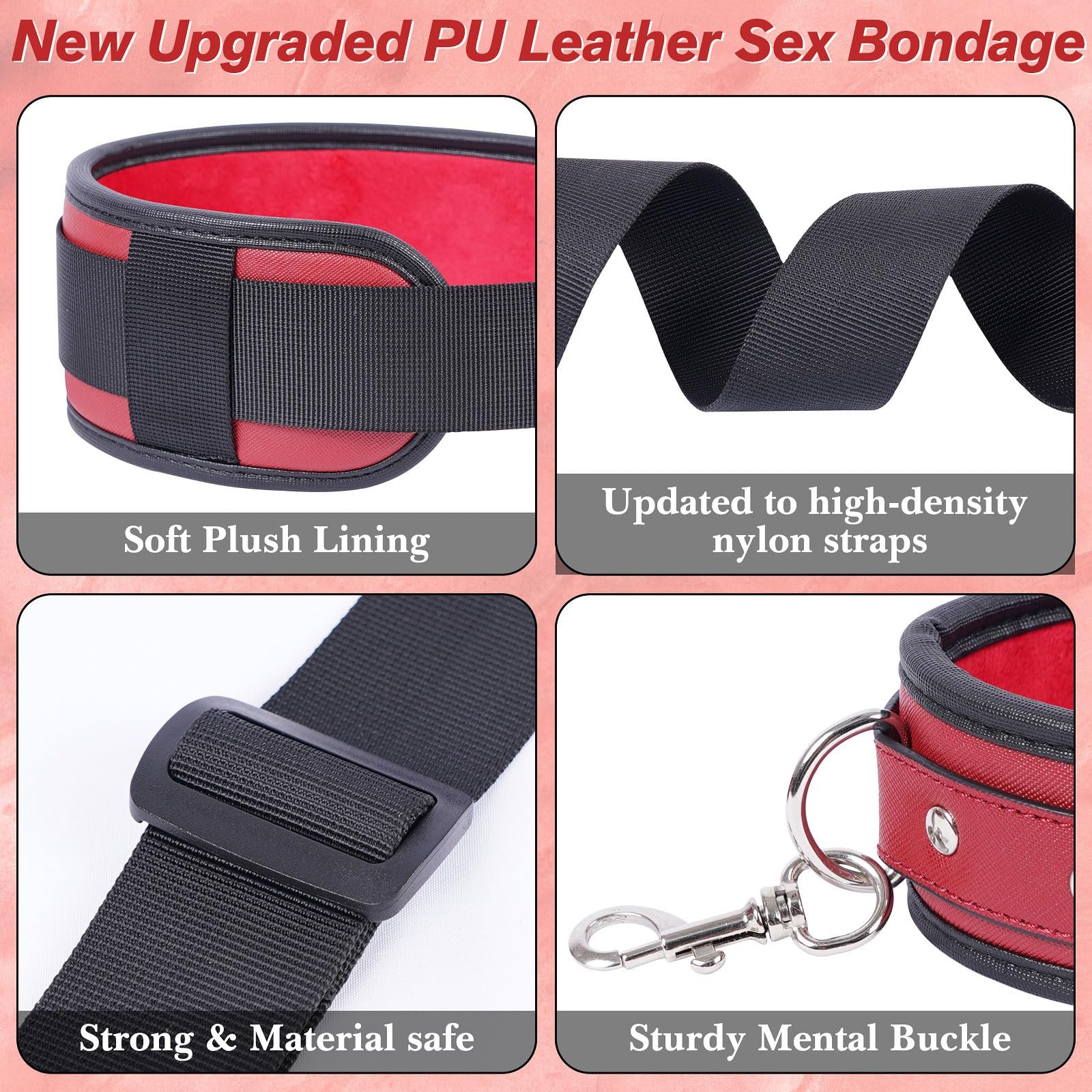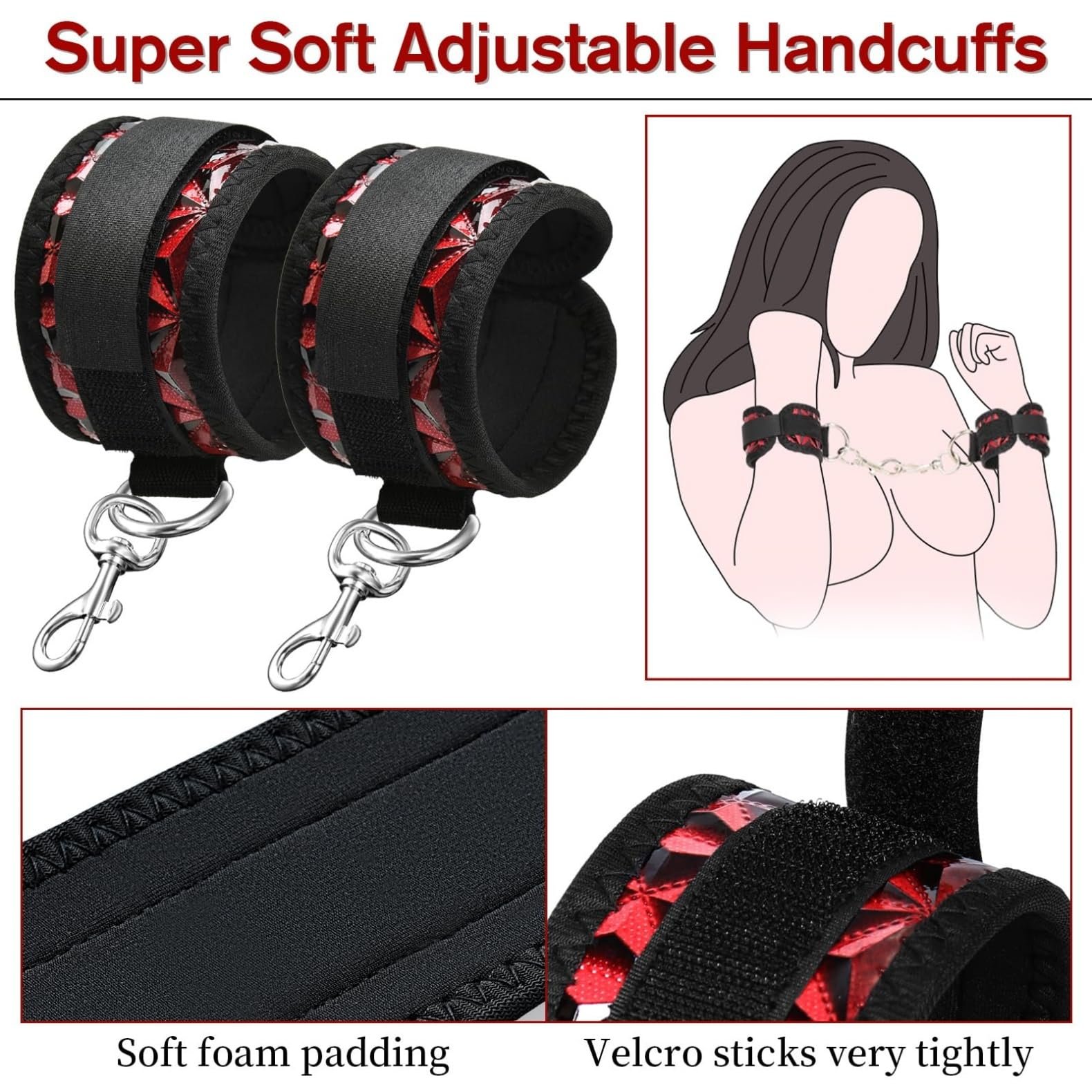 · 1, High-Quality Bondage Game Restraint Strap: The product consists of soft sponge pads and nylon straps and sturdy hardware buckles, super soft pads and straps, so you can protect your wrists / thighs / ankles when playing bondage games, nylon straps with tight fabric, firm, non-pilling, safe and odorless