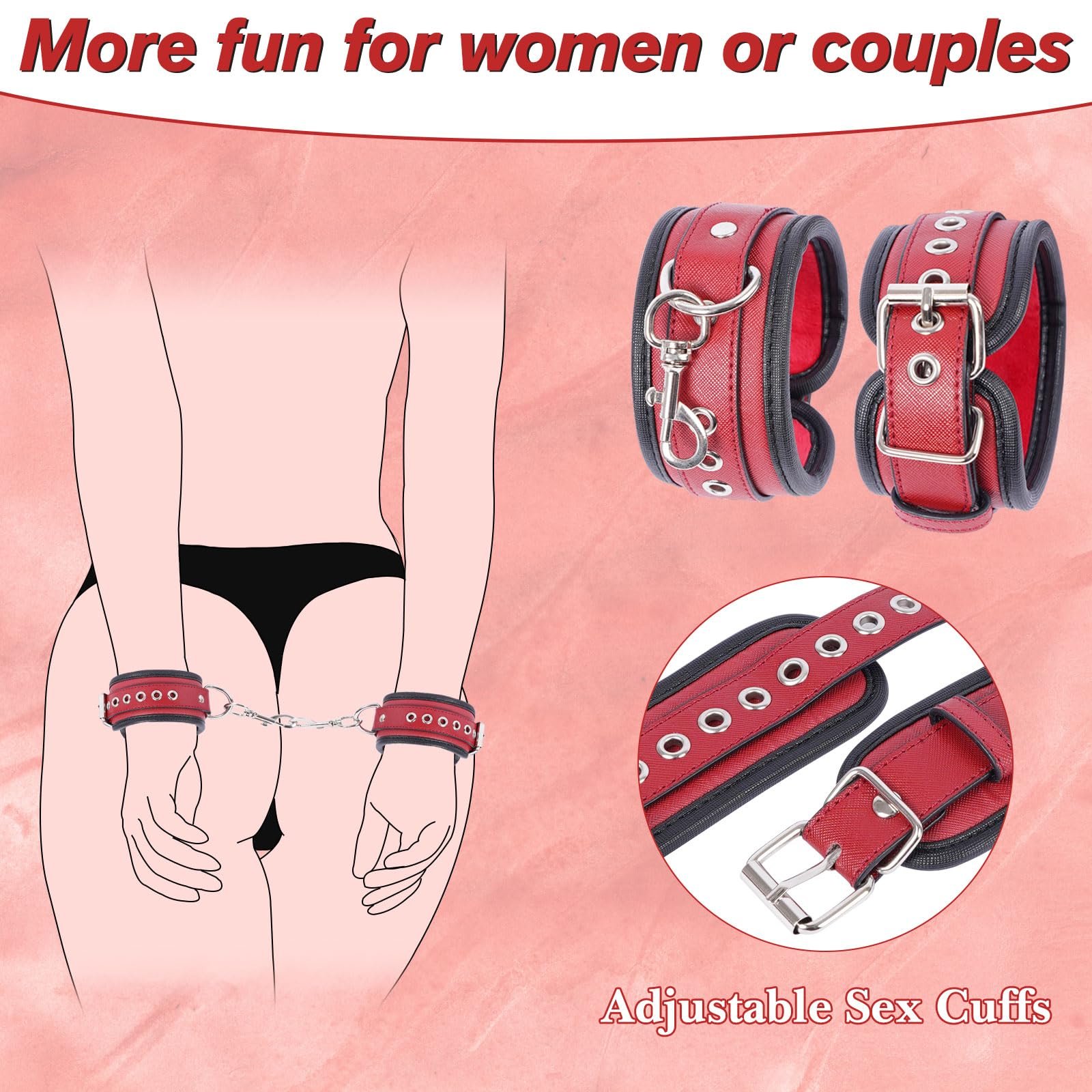 · 3,Adjustable BDSM Kit: It consists of handcuffs + leg straps, adjustable leg straps are more suitable for any size, you can easily find a very suitable angle for you to easily explore your partner’s G-spot, better please her, removable handcuffs for your sexual experience adds a new level of fun