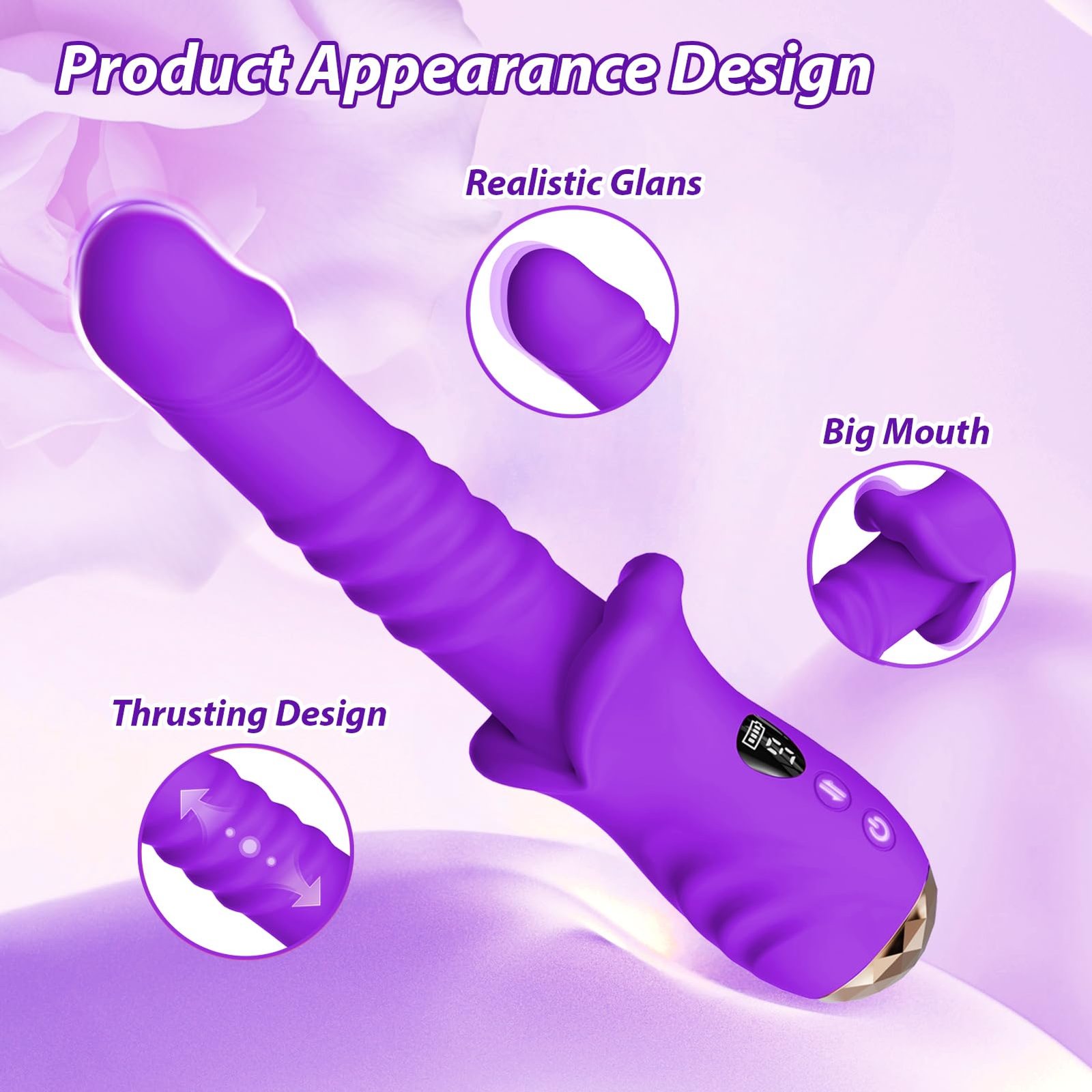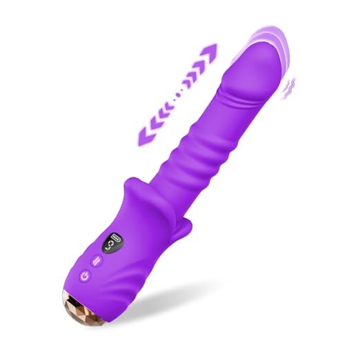 Thrusting Dildo Sex Toys for Women Play, Adult Toys Vibrator with 9 * 9 Thrust & Vibration Modes, Ergonomic Design Mouth Shaped Personal Massager with LED Display for G Spot, Anal Stimulation