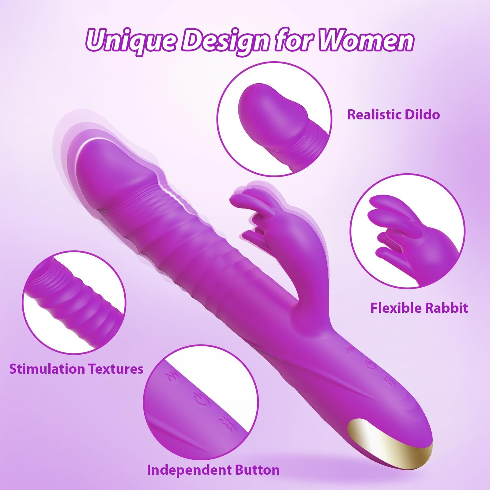 · 10 Thrusting & 10 Vibrating Modes - The women vibrator features a powerful motor with three independently switched modes with 10 powerful thrust and 10 vibrations, deeply stimulating the C, G & A spot, bring you to achieve an unprecedented climax experience.