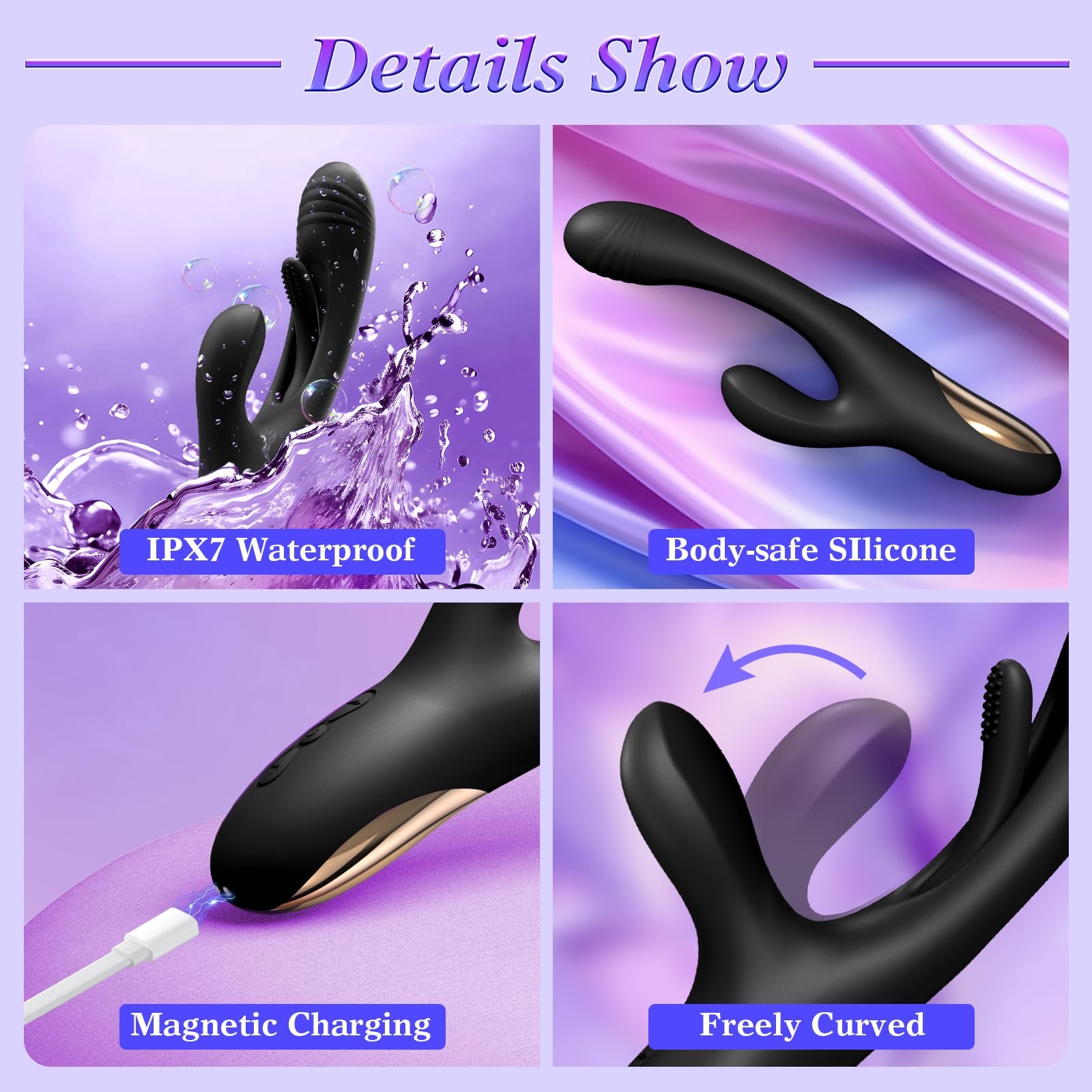 · Eclectic Ecstasy and Indulge in the Triple of Pleasure: Embark on a journey into diverse pleasure with our 3-in-1 women sex toy. This versatile rabbit vibrator dildo seamlessly integrates three distinctive features: alluring rabbit ear vibrations, precision vibrations at the wand's tip, and captivating hollow flapping. The woman sex toy fusion creates a comprehensive and adaptable experience, allowing you to explore a spectrum of sensations and discover the perfect mode to satisfy your desires