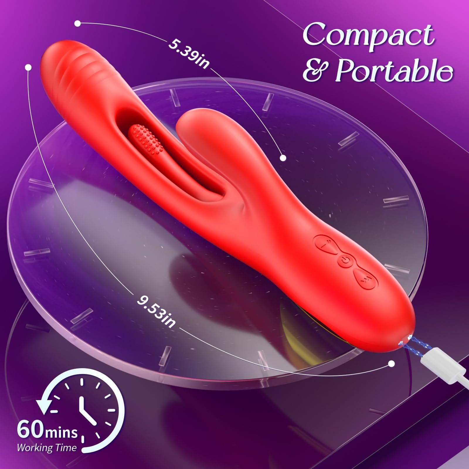 Vibrator Dildo Rabbit Sex Toys -LOVENOTE G Spot Vibrator Massager for Women Clitoral Nipple Stimulation, 3 in 1 Sex Toys with 14 Vibration & 7 Tongue Licking Flapping, Adult Product Aurieel (Purple)